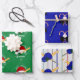 Personalisierbare Weihnachtsverpackung mit Baseball Thema - 3 Blätter. Zwei Bogen sind mit Misteloe, einem Baseballdiamanten, Fledermaus und Ball, einer mit Weihnachtsmannmütze, der andere mit Baseballmütze, der dritte Bogen mit roten und weißen Bonbons, Baseball und einem schwarzen Bogen versehen. Die von uns ausgewählten Hintergrundfarben sind grün, blau und hellgrau mit Farblinien, aber Sie haben die Möglichkeit, diese zu ändern. Stellen Sie sicher, dass Sie Ihren Text an der personalize-Eingabeaufforderung hinzufügen. Für Sie entworfen von HAMbyWhiteGlove