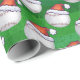Baseball in Weihnachtsmannmütze Pattern auf Grün Geschenkpapier