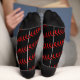 Fun Socken für Baseball- oder Softballspieler, mit einer Grafik von rotem Baseball oder Softball Schnürsenkel, die vertikal um die Socken auf schwarzem Hintergrund laufen. Diese machen eine lustige Geschenkidee für Baseball- und Softballspieler.