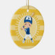 Dieses Design verfügt über einen niedlichen blonden Baseballspieler in marinebasischem Jersey mit Baseballschläger auf gelbem Hintergrund.