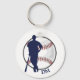 Dieser Schlüsselanhänger verfügt über einen blauen Baseballspieler und eine Fledermausabstimmung mit einer weißen Ballabbildung, die mit einer roten Naht versehen ist. Ihr Monogramm ist unten in marineblau. Auf der weißen Rückseite befinden sich zwei benutzerdefinierte Textfelder.