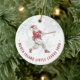 Feiern Sie die Urlaubssaison Ihres Teams mit diesem zweiseitigen Baseball Santa Ornament von Redwood & Vine Design Co. Die Vorderseite zeigt einen Vintagen Aquarell Santa, der eine Fledermaus mit weichen Schneeflockdetails und individuellem Teamtext schwingt, während auf der Rückseite Ihr Lieblings-Spieler-Foto angezeigt wird. Dieses in dauerhafter Keramik gefertigte Ornament macht Baseballfamilien, Trainern oder Spielern einen durchdachten Sake, um eine tolle Saison zu ehren und feierlichen Beifall zu verbringen.