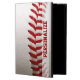 Ein Makrofoto eines nagelneuen Baseballs mit roter Naht. Perfektes Geschenk für den Baseball- oder Softball-Sportfan.