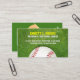 Ein Baseball wird weg auf der Unterseite dieser Geschäftskarte auf einem Bett des Grases wartete, aufgehoben zu werden geerntet. Hauptkontaktinformationsdrucke gegen das Gras. Die Rückseite zeigt ein Diagramm eines Baseballfeldes gegen Grün mit Netzinformationsdrucken auf sie und ein tagline oder anderes Informationsdrucken unten. Vervollkommnen Sie für Baseball- oder Softballtrainer, Teams, Ligen, sportliche gute Speicher oder jeden möglichen Sporteinzelhändler. Verfügbar mit zusammenpassenden Produkten.