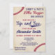 Utilisez notre gorgée de baseball vintage et voyez des invitations à vos invités invitations à votre soirée de baseball pour les invités à rencontrer le nouveau bébé. Les fils de baseball rouges classiques sont sur un arrière - plan vintage et les polices sont en bleu marine et rouge. N'oubliez pas de chercher nos inserts d'invitation coordonnés et d'autres fournitures de baby shower sur le thème du baseball.