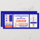 Eine lustige Einladung zum Ticketstil, perfekt für Ihre nächste Baseballveranstaltung! Dieses Baseballticket ist blau und orange für Ihr Lieblings-Team.