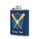 Baseballsymbol mit zwei Fledermäusen und einem Ball über einem blauen Schild. Benutzerdefinierte Hintergrundfarbe. Eigener Text.