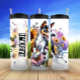 Ein lebendiger Basenji mit erlesenen Ohren und einem fröhlichen, offenen Ausdruck spitzt sich durch eine lebendige und etwas abstrakte Anordnung von Sonnenblumen, rosa Pfannkuchen und farbenfrohen Gängen. Wasserfarbenflecken im Hintergrund tragen zum dynamischen und fröhlichen Ambiente dieses spirituellen Hunenportraits bei.