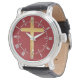 Uhr, Vintage Männeruhr mit schwarzem Lederarmband