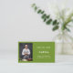 Ein grüner Hintergrund. Personalisieren Sie Foto, Titel, Firmenname/Name und Text und geben Sie diese ein. Kontaktinformationen auf der Vorderseite. Weißer Text. Zurück: Vorlagen für Ihren Namen, Titel, Telefonnummer, E-Mail- und Website-Adresse, Ihren eigenen QR-Code für Ihre Website oder Ihr Social-Media-Konto. Facebook und Instagram Icons/account.