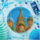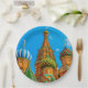 Nahaufnahme der Kuppeln der Basilischen Kathedrale auf dem Roten Platz in Moskau, Russland, gegen den blauen Himmel. Es ist auch als Vasily die gesegnete Kathedrale und als Kathedrale der Fürstenspaltung der Heiligsten Theotokos auf dem Moat bekannt