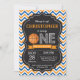 Basket Anniversaire Invitation 1er Anniversaire fête. Invitation de fête d'anniversaire. Basket-ball Sport Thème Anniversaire Bash. Arrière - plan de tableau noir bleu orange et blanc Chevron. 1er premier anniversaire. Numérique imprimable. Pour plus de personnalisation, cliquez sur le bouton "Customiser" et utilisez notre outil de conception pour modifier ce modèle.