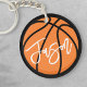 Porte - clé avec un basket en noir et orange et votre nom en blanc. Toutes les couleurs sont personnalisables dans l'outil de conception.