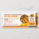 C'est un baby shower de foutre ! Célébrez votre Baby shower à thème Sport avec notre billet de Basketball Party Invitation. Ce baby shower à thème de basket-ball propose du basket-ball sur un pass d'entrée de jeu de basket-ball jaune orangé. Ce baby shower de basket-ball est parfait pour votre baby shower à thème sport, les invitations à la douche bébé de basket-ball, le baby shower de sport de départ, l'invitation à la fête de baby shower NBA ou les invitations au jeu de basket-ball.