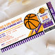C'est une fête salope ! Célébrez votre anniversaire avec notre invitation à la fête de basket à LA lakers couleur, violet et jaune! C'est une fête salope ! Cette invitation à billets de basket-ball comporte un basket-ball sous-marin sur un modèle de billet d'entrée de basket-ball. Jetez votre petite star de la nba une fête d'anniversaire sportive mémorable à thème avec cette invitation de billets de basket-ball anniversaire. Idéal pour la fête de basket-ball, la fête d'anniversaire de la Nba, le basket-ball tous les vedettes fête d'anniversaire.