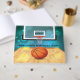 Basketball Design Gästebuch, mit anpassbarem Text auf Vorder- und Rückseite.