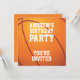 Perfekte Party Einladungen für einen Basketballfan oder Basketballspieler. Auf der Vorderseite der Einladung befindet sich ein naher Basketball. Auf der Rückseite der Einladung befinden sich alle Informationen für die kommende Feier mit weißem Text auf einem orangefarbenen Hintergrund. Die Farbe des Textes und des Hintergrunds kann in Anzug der eigenen Bedürfnisse und Stil geändert werden. Der gesamte Text ist für Ihr eigenes Party individuell anpassbar.