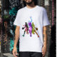 Graffiti Basketball Shirt Basketball-Spieler Silhouette Basketball-Spieler darstellend einen spektakulären Punktestand, mit dynamischen Farben und künstlerischen Stil Ideal für Basketballfreunde