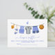 Carte de rabat à couche aquarelle. Petit Joueur de basket-ball MVP Baby shower de ligne de vêtements. Vous y trouverez un maillot de basket aquarelle, des chaussures, un maillot d'arbitre et un ballon de basket sur une ligne de vêtements de couleurs bleu et marron. Tout libellé peut être modifié, à n'importe quel anniversaire d'âge ou à un baby shower. Pour apporter d'autres modifications, accédez à Personnaliser ce modèle. En bas, vous verrez "Vous voulez customiser encore plus ce design ? Cliquez sur EDIT à l'aide de l'outil Design. À partir de là, vous pouvez changer certaines polices et certaines couleurs, déplacer les choses ou supprimer ce dont vous avez besoin.