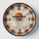 Runde Wanduhr mit Bild von Basketbällen und Basketballnetzen.