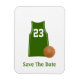 Dieses Save the Date Flexible Magnet zeichnet sich durch das Image eines Basketball-Singlet-Shirts und eines Basketballs aus. Text und Shirt können leicht verändert werden. Einfach anzupassen. Ändern Sie den Text und die Nummer im Shirt. Verwenden Sie die Schaltfläche Anpassen Es, um eine andere Shirt-Farbe auszuwählen und um mehr Text hinzuzufügen, z. B. Ihren Namen und Ihre Gruppe.