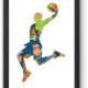Graffiti Basketball zu Shirt Silhouette Basketball-Spieler darstellend einen spektakulären Dunk, mit dynamischen Farben und einem modernen künstlerischen Stil. Ideal für Basketballfans