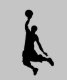 Niedlicher Basketballspieler aus schwarzer Silhouette auf grauem Hintergrund.