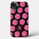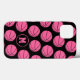 Dieses Basketball-iPhone-Gehäuse von niedlichen Mädchen weist ein verworrenes Muster aus rosa Basketballbällen auf schwarzem Hintergrund auf - mit dem Monogramm von katz_d_zynes individuell gestaltet