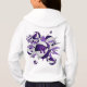 Le sweat - shirt à capuche de basketball de cette fille cool présente une "explosion" de balles de basketball de taille variée qui ont alternativement des panneaux recolorés violet et blanc et des formes d'étoiles violet, gris et blanc - personnaliser avec son monogramme ou son numéro de maillot - le design est à l'arrière du sweat - shirt à capuche mais peut être déplacé ou dupliqué sur le devant - par katz_d_zynes