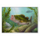 Ein riesiger Bassfisch in einem zauberhaften Ambiente aus Gras und glänzendem Sand. Ölgemälde von Amanda Diehl, Paxdomino Designs.