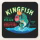Dieses Vintage Kratetikett eines Bassfisches mit einer Krone auf schwarzem Hintergrund wird jedem Vintagen Kunstliebhaber gefallen. Es ist eine Werbung für KingFish Peas. Die Farben sind sehr lebendig und scharf. Wählen Sie dieses Bild noch heute für Ihr Produkt aus.