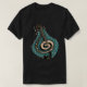 Comix Bass-Gitarre, geformt wie ein dreifacher Clef, umgeben durch musikalische Anmerkungen, über eine blaugrüne Birneform. Schwärzen Sie das Zeichnen mit digitaler Farbe, T - Shirts mit Tinte, schwitzt, Karten, Tassen, Geschenke.