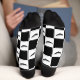 Socken mit kühlem Schwarz-Weiß-Schachbrett mit Fledermäusen. Trag sie zu Halloween oder an einem anderen Tag des Jahres, wo sie deine Stimmung Anzug haben. Fügen Sie einfach ein oder zwei Paare in Ihren Warenkorb, holen Sie sie Zuhause, und tragen Sie sie dann in die Welt. Bat Halloween Schachbrett Pattern Socks Holidaydesign | ©Melissa Patton - Künstler/Illustrator