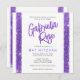 Moderner, einfacher und minimaler lila Glitzer Stripe Bat Mitzvah Einladung mit lustigen und funky kalligraphischen Bürstennamen und elegantem Typografie-Design für eine klassische Mitzvah-Feier. Alle Texte, Farben und Schriftart können mit dem Template Design Tool bearbeitet werden. Koordination von Gegenständen und Dekorationen im Designer Store für Papiertraube Zazzle.