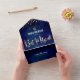 Seien Sie stolz, freuen Sie sich und präsentieren Sie diesen Meilenstein Ihres Lieblings-Bat Mitzvah! Senden Sie diese atemberaubende, moderne, raffinierte, personalisierte hebräische Namenseinladung für eine Veranstaltung, an die Sie sich erinnern können. Graphische Imitate Goldfolienkalligraphie Drehbuch, Star of David, und Konfetti, überlagern einen reichen, dramatischen, marineblauen Aquarellhintergrund. Ein Imitat goldener Star von David überlagert ein Imitat metallische goldene Farbe Hintergrund auf der Rückseite. Personalisieren Sie den benutzerdefinierten Text mit dem Namen, dem hebräischen Namen, dem Datum und den Informationen zum Veranstaltungsort Ihres Bat Mitzvah. Garantiert, um ihrem besondere Anlass stilvollen Spaß zu verleihen! Geben Sie einfach den Namen, das Datum, den Ort Temple und andere Informationen Ihrer Tochter ein und Sie können diese Einladung des Bat Mitzvah ganz einfach personalisieren. Bitte schicken Sie mir eine Nachricht mit Fragen oder Wünschen.