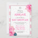 Bat Mitzvah Pink Roses Hebräisch Einladung Silber