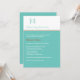 Une Torah turquoise et graphique souligne cette invitation Bat mitzvah. Le nom complet de la fille Bat mitzvah est écrit ci-dessous dans un script décontracté tandis que le texte complet de l'invitation se démarque par un panneau bleu turquoise brillant accentué par les règles orangées. Disponible en couleurs alternatives avec des produits assortis et avec options pour le Bar Mitzvah.