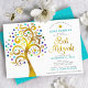 Bat Mitzvah Turquoise Gold Moderner Baum des Leben Einladung