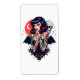"Dieses auffallende und stilvolle Design zeichnet sich durch eine Frau mit einer Retro-Ästhetik aus, die mit lebhaften Tattoos auf ihren Armen geschmückt ist und dunkle Fledermausflügel besitzt. Sie hält einen stilisierten Schädel, und im Hintergrund ist ein roter Halbmond mit funkelnden Sternen sichtbar. Der Gesamtstil vereint gotische und Button-up-Elemente mit einer Touch dunkler Romantik. Dieses Design ist vielseitig für Produkte mit alternativer, edgy oder Vintag inspiriert Ästhetik. Stellen Sie sich Bekleidung, Accessoires, Kunstwerke oder Wohngestaltung vor, die einen kühlen und einzigartigen Stil vereinen."