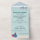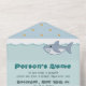 Dieses Thema der Badezeit-Einladung mit einer abnehmbaren RSVP-Karte weist ein sternenbedecktes Fliesenmuster auf, das an eine Badezimmerwand mit weißer Badewannenkante erinnert, und an den Gipfel des rippelnden Wassers, das durch die Fantasie eines Kindes in ein außergewöhnliches Abenteuer verwandelt wird. Oberhalb dieser Szene liegt ein lächelnder, grauer Hai; spielerisches, rundes U-Boot in Primärfarben; wellenartiger Mustertext auf dem Innern, der für Ihr Event angepasst werden kann; und ein Leerraum auf der Außenseite, der für die Kartenadressierung an den Empfänger und den rückgabefähigen Bereich mit der entsprechenden Rücksendeadresse verwendet werden kann. Karo in der Bath Time Fancies Kollektion für mehr tolle Geschenke und Produkte für eine Babydusche oder die kleine Dusche in deinem Leben.