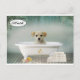 Welpe sitzend in einer Badewanne gewartet so schön, seine Wäsche für die Woche abwaschen