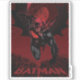 Diese mächtige Grafik illustriert Batman in einer dynamischen Action-Pose, die vor dem Hintergrund eines blutroten Mondes und einer stürmischen Gotham-Skyline sprang. Die Illustration ist in Rot- und Schwarz-Tönen durchdrungen und unterstreicht die Intensität und Gefahr des Augenblicks. Batman wird in voller Bewegung dargestellt, in Hand packend, bereit, den Gefahren entgegenzutreten, die in der Nacht lauern. Die Stadt unter ihm wird in einem detaillierten Wireframe-Stil dargestellt, was auf ihre Komplexität und die Tiefe der Geheimnisse hinweist, die sie besitzt. Regen schlägt über die Bühne und verschärft die dramatischen Spannungen und das Gefühl eines auf hohem Spiel stehenden Kampfes gegen die Kriminalität. Das Kunstwerk vermittelt Batmans unerbittlichen Antrieb und seine Rolle als dunkler Held in einer Stadt, die nie schläft, und erschließt seine Essenz als Gothams stillen Wächter und Beschützer.
