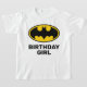 Lassen Sie das Geburtstagsmädchen sich mit diesem tollen Batman Birthday Girl T - Shirt wie ein Superheld fühlen! Dieses Shirt mit dem ikonischen Bat-Logo und Ihrem eigenen Text ist perfekt für stilvolle Feiern. Er ist aus weichem, langlebigem Stoff gefertigt und eignet sich gut für den Alltag und ergänzt die Festlichkeiten um einen feinen Superhelden-Flair.