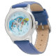 Kinderuhr aus Edelstahl mit blauem Lederarmband