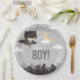 Feiern Sie Ihre Babydusche mit diesen Tellern aus der Zeitung "It's a boy".