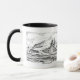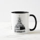 Mug with drawings of the famous German battleship Bismarck of world war II with the name of the ship written with fraktur letters.