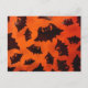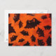 Schwarze Fledermäuse auf orangefarbenem Hintergrund.