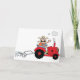 Das ist ein cooles Design eines Bauern auf einem Traktor. Der Bauer fährt einen roten Traktor und winkt aus. Der Traktor schleppt einen Pflug. Dieser Bauer auf einem Traktor sieht auf diesen Grußkarten großartig aus