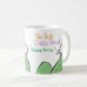 Tasse mit Gewerbe oder Beruf. Der sonnige Cartoon eines Schafes auf einem Hügel. Das Schaf sagt "Best Baa None". Design-Wiederholungen auf beiden Seiten