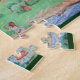 Freizeit Szene von Frauen in traditionellen Kleider arbeiten in einem Feld. Gebäude und Berge im Hintergrund. Schöne Kunst des russischen Malers Boris Kustodiev.